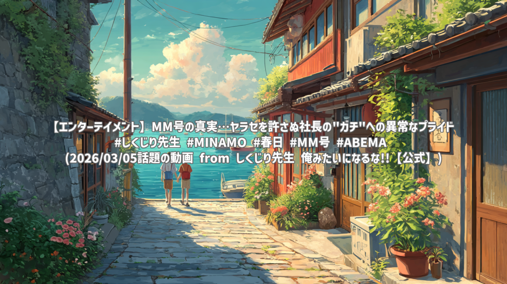 【エンターテイメント】MM号の真実…ヤラセを許さぬ社長の"ガチ"への異常なプライド #しくじり先生 #MINAMO #春日 #MM号 #ABEMA (2026/03/05話題の動画 from しくじり先生 俺みたいになるな!!【公式】) 動画: MM号の真実…ヤラセを許さぬ社長の"ガチ"への異... -