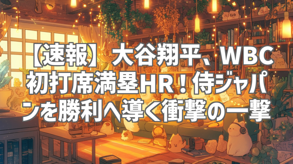 【速報】大谷翔平、WBC初打席満塁HR!侍ジャパンを勝利へ導く衝撃の一撃 WBC(ワールド・ベースボール・クラシック)が開幕し、世界中の野球ファンが熱狂する中、我らが大谷翔平選手がやってくれました!初打席でいきなり満塁ホームランを放ち、侍ジャパン... -