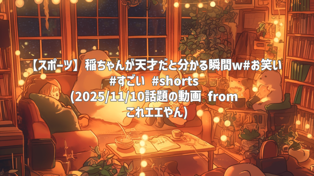 【スポーツ】稲ちゃんが天才だと分かる瞬間w#お笑い #すごい #shorts (2025/11/10話題の動画 from これエエやん) 動画: 稲ちゃんが天才だと分かる瞬間w#お笑い #すごい #shorts (YouTubeより) 動画情報 チャンネル: これエエやん 公開日: 2025年11月06日 ... -