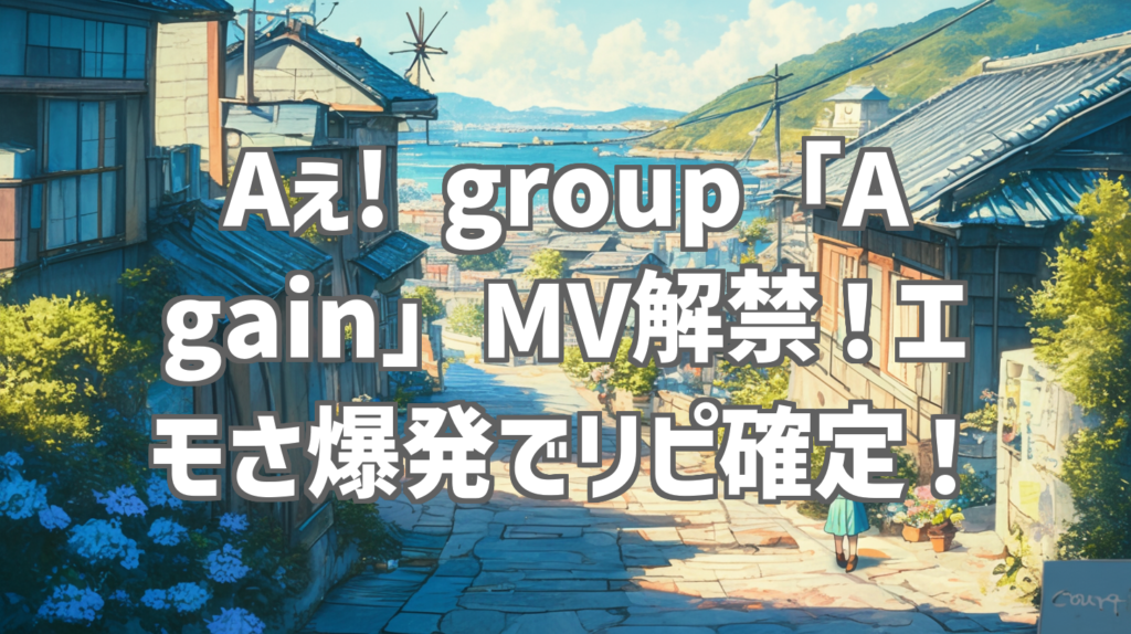 Aぇ! group「Again」MV解禁!エモさ爆発でリピ確定! 待ってました!Aぇ! groupの新曲「Again」のMVがついに解禁!もう、公開されてから何回リピートしたか分かりません!エモさ全開で、彼らの表現力の進化にただただ圧倒されるばかり。これは間違いなくA... -