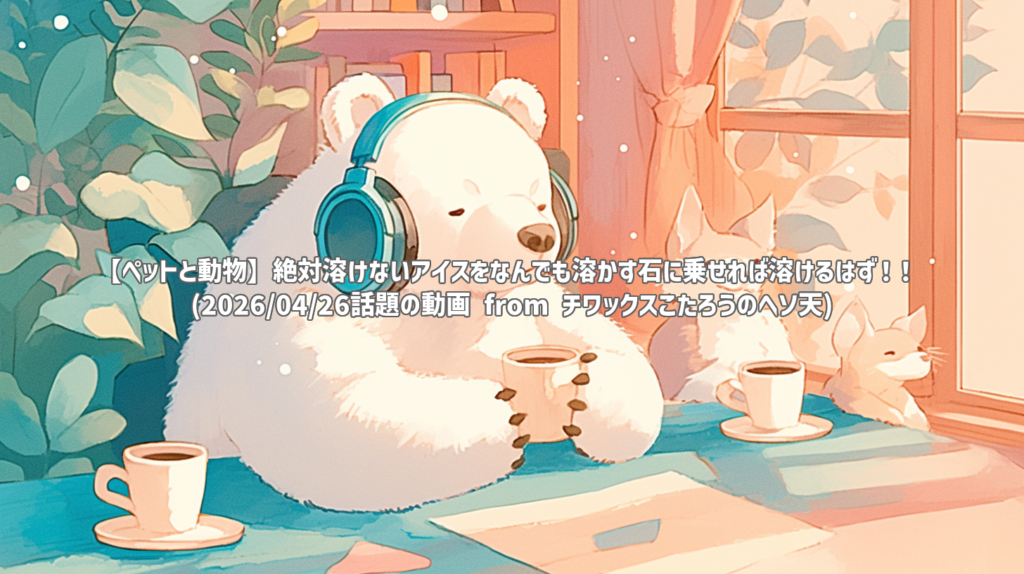 【ペットと動物】絶対溶けないアイスをなんでも溶かす石に乗せれば溶けるはず!! (2026/04/26話題の動画 from チワックスこたろうのヘソ天) 動画: 絶対溶けないアイスをなんでも溶かす石に乗せれば溶けるはず!! (YouTubeより) 動画情報 チャンネル: チ... -