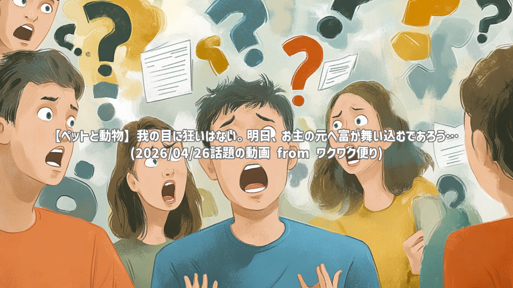 【ペットと動物】我の目に狂いはない。明日、お主の元へ富が舞い込むであろう… (2026/04/26話題の動画 from ワクワク便り) 動画: 我の目に狂いはない。明日、お主の元へ富が舞い込むであろう… (YouTubeより) 動画情報 チャンネル: ワクワク便り 公開日: 20... -