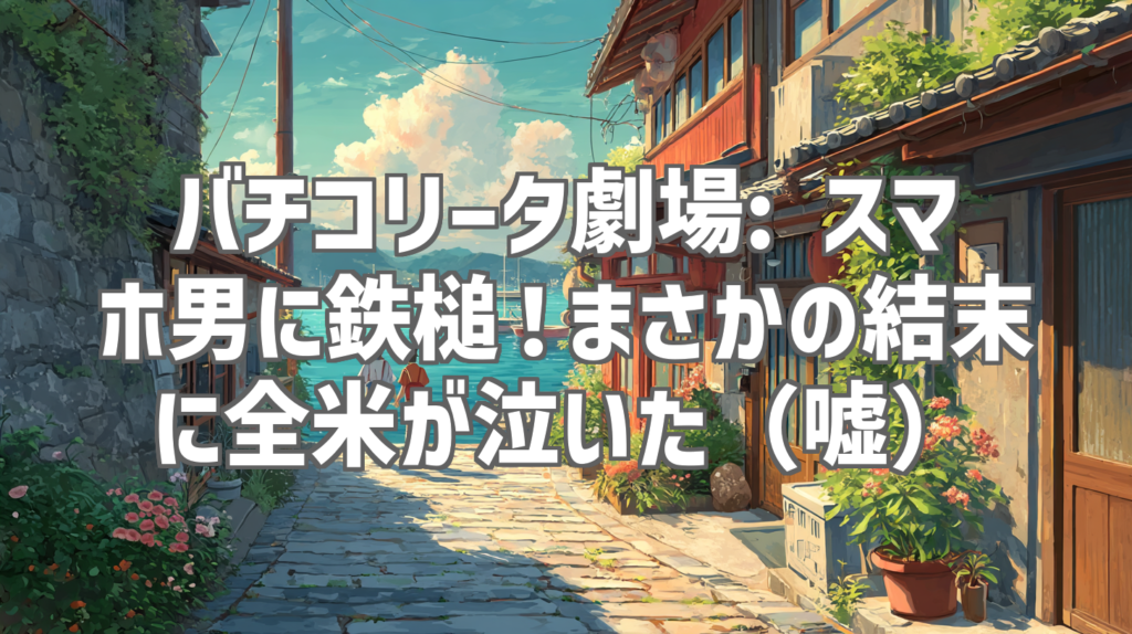 バチコリータ劇場: スマホ男に鉄槌!まさかの結末に全米が泣いた(嘘) 皆さん、こんにちは!今回は、YouTubeで爆発的な人気を誇る「バチコリータ」さんの短編動画をご紹介します。タイトルは「スマホを見ながらぶつかってきたにも関わらず怒鳴る男性に思...
