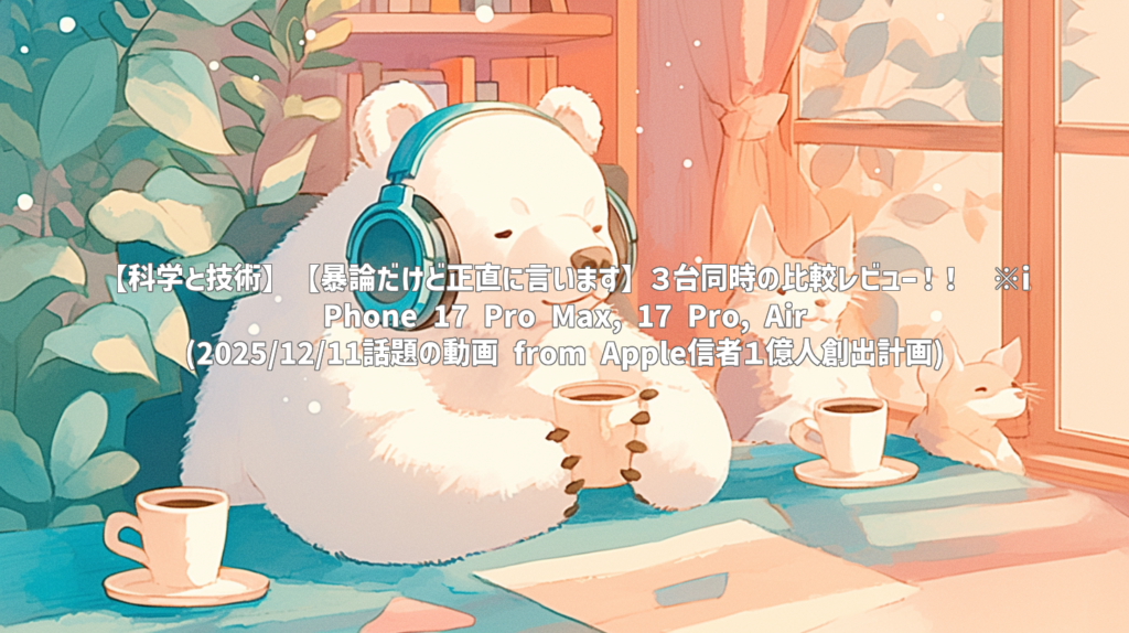 【科学と技術】【暴論だけど正直に言います】3台同時の比較レビュー!! ※iPhone 17 Pro Max, 17 Pro, Air (2025/12/11話題の動画 from Apple信者1億人創出計画)