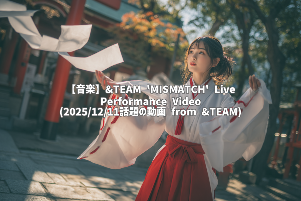 【音楽】&TEAM 'MISMATCH' Live Performance Video (2025/12/11話題の動画 from &TEAM) 動画: &TEAM 'MISMATCH' Live Performance Video (YouTubeより) 動画情報 チャンネル: &TEAM 公開日: 2025年12月07日 再生回数: 約766,049回 動画の長さ:... -