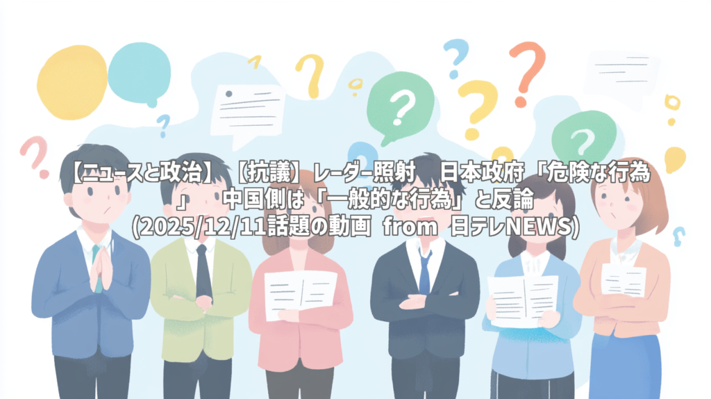 【ニュースと政治】【抗議】レーダー照射 日本政府「危険な行為」 中国側は「一般的な行為」と反論 (2025/12/11話題の動画 from 日テレNEWS) 動画: 【抗議】レーダー照射 日本政府「危険な行為」 中国側は「一般的な行為」と反論 (YouTubeより) 動画情報... -