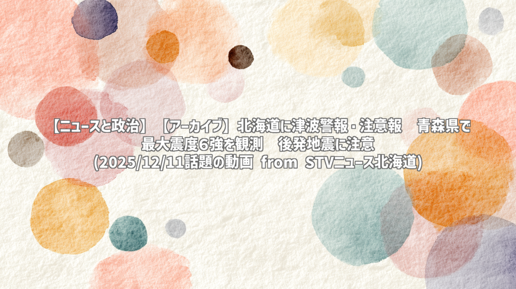 【ニュースと政治】【アーカイブ】北海道に津波警報・注意報 青森県で最大震度6強を観測 後発地震に注意 (2025/12/11話題の動画 from STVニュース北海道) 動画: 【アーカイブ】北海道に津波警報・注意報 青森県で最大震度6強を観測 後発地震に注意 (... -