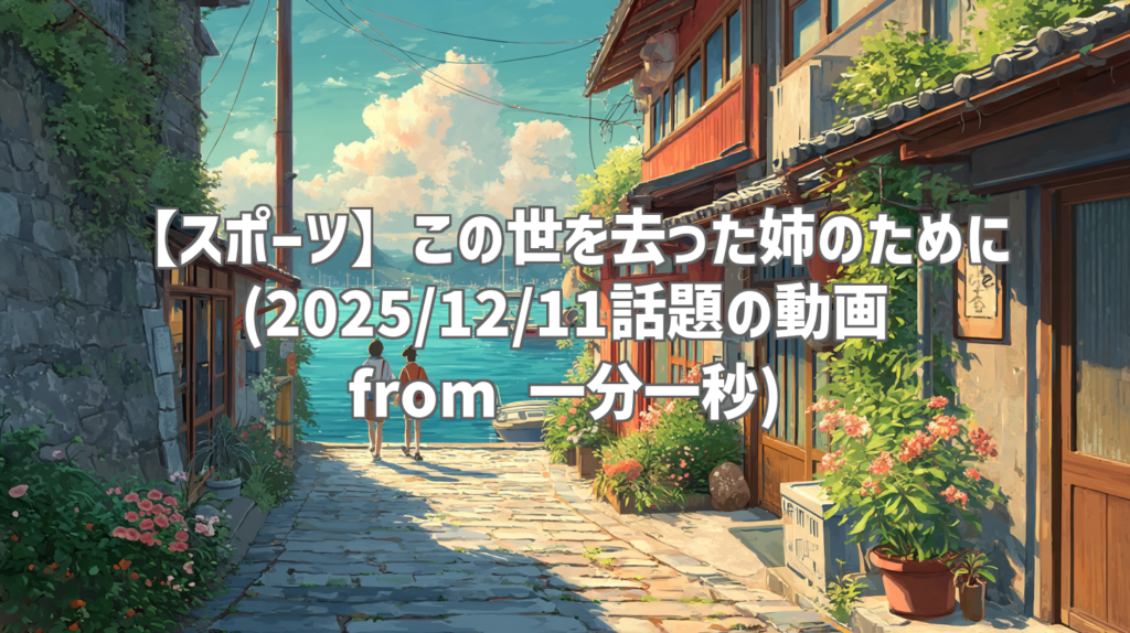 【スポーツ】この世を去った姉のために (2025/12/11話題の動画 from 一分一秒) 動画: この世を去った姉のために (YouTubeより) 動画情報 チャンネル: 一分一秒 公開日: 2025年12月09日 再生回数: 約1,254,926回 動画の長さ: 38秒 ジャンル: スポーツ 動画...