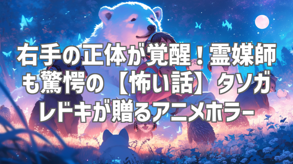 右手の正体が覚醒!霊媒師も驚愕の【怖い話】タソガレドキが贈るアニメホラー YouTubeで日夜、心臓を鷲掴みにされるような刺激的な動画を探し求めているホラーファンの皆さん、こんにちは!今回ご紹介するのは、短いながらもその完成度と衝撃的な展開で、... -