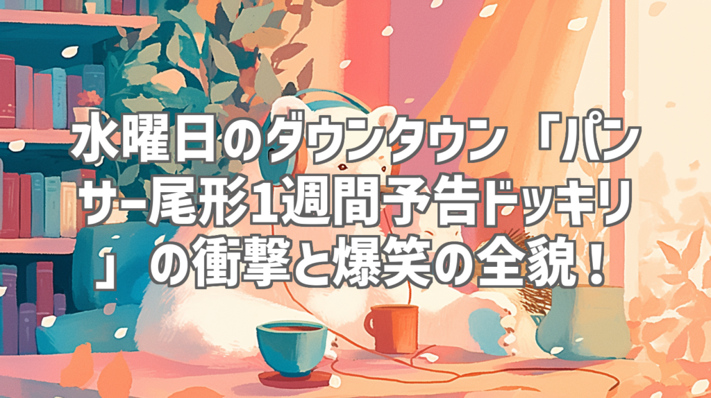 水曜日のダウンタウン「パンサー尾形1週間予告ドッキリ」の衝撃と爆笑の全貌! 皆さん、こんにちは!人気YouTube動画を深掘りレビューする「バズり動画研究所」へようこそ!今日は、日本のテレビ史に名を刻む伝説的番組『水曜日のダウンタウン』から、まさ... -