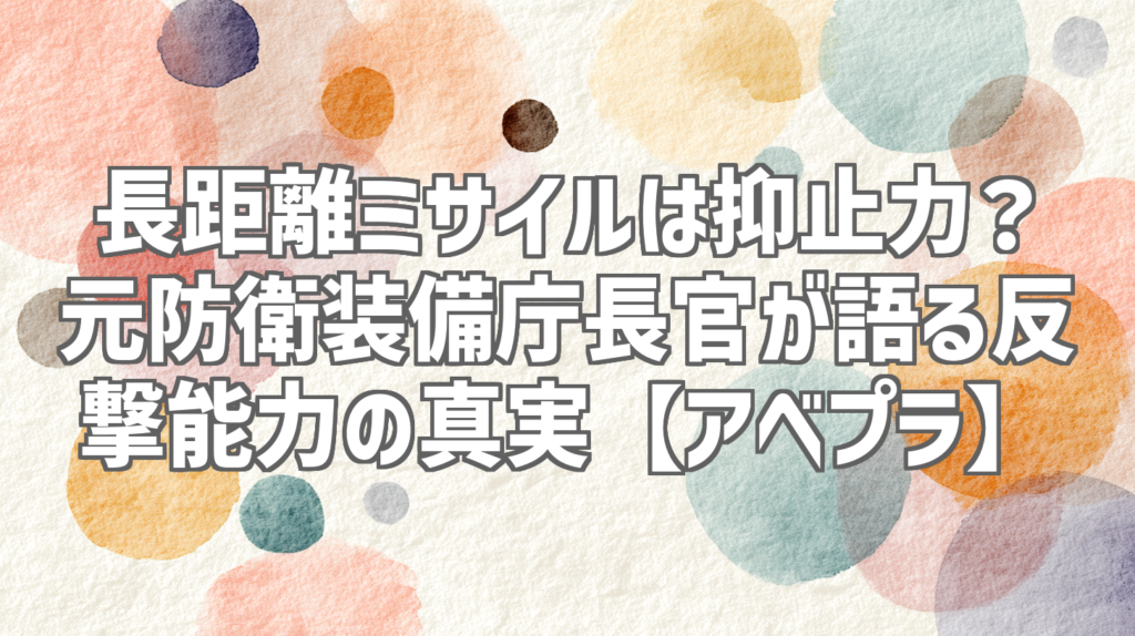 長距離ミサイルは抑止力?元防衛装備庁長官が語る反撃能力の真実【アベプラ】 最近、安全保障に関する議論が活発化していますよね。特に「反撃能力」という言葉をニュースで見聞きする機会が増えました。でも、正直なところ、その意味や必要性を完全に理解...