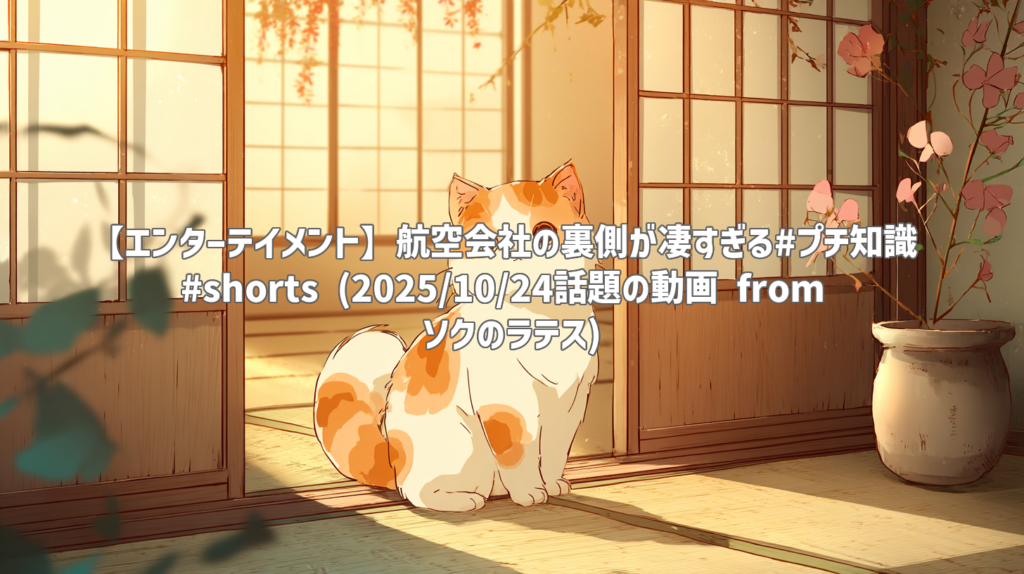 【エンターテイメント】航空会社の裏側が凄すぎる#プチ知識 #shorts (2025/10/24話題の動画 from ソクのラテス) 動画: 航空会社の裏側が凄すぎる#プチ知識 #shorts (YouTubeより) 動画情報 チャンネル: ソクのラテス 公開日: 2025年10月20日 再生回数: 約3... -