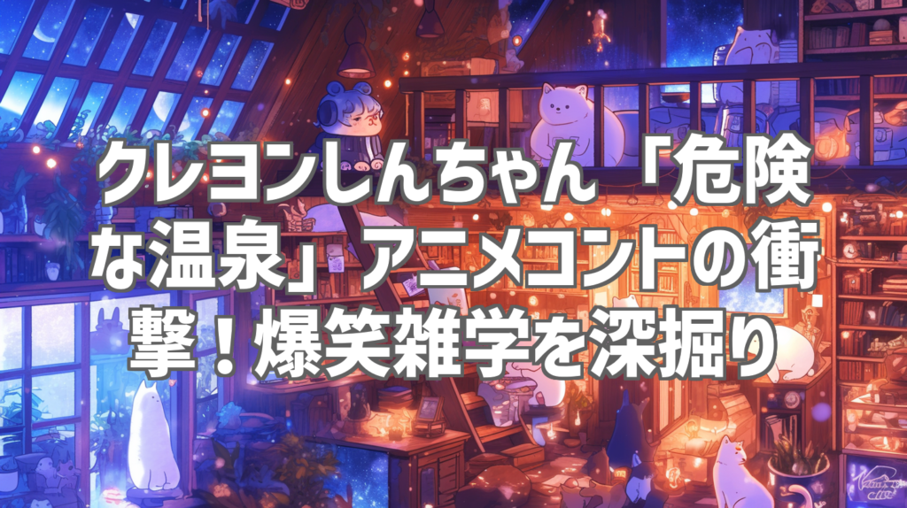 クレヨンしんちゃん「危険な温泉」アニメコントの衝撃!爆笑雑学を深掘り 皆さん、国民的アニメ「クレヨンしんちゃん」が、まさかの「危険な温泉」というテーマでコントを繰り広げたらどうなると思いますか?今回ご紹介するのは、YouTubeチャンネル「大拇... -