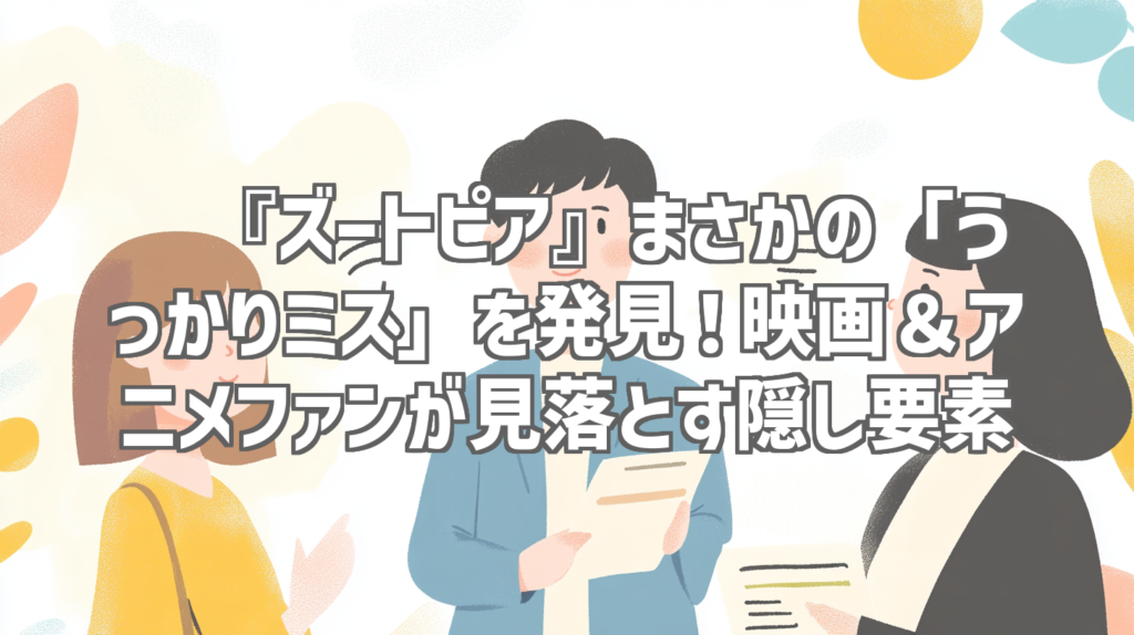 🐰『ズートピア』まさかの「うっかりミス」を発見!映画&アニメファンが見落とす隠し要素 ディズニー・アニメーションの金字塔とも言える名作『ズートピア』。その精緻な世界観とキャラクター描写は、何度見ても新たな発見があるほど作り込まれて... -