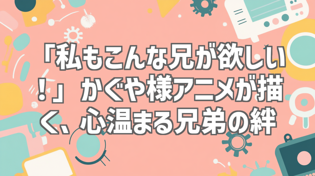 「私もこんな兄が欲しい!」かぐや様アニメが描く、心温まる兄弟の絆 ああ、もう何度リピートしたことか!今回は、YouTubeで約120万回再生を突破し、多くの視聴者の心を掴んだ「かぐや様は告らせたい」のショート動画をご紹介します。タイトルもズバリ、「... -