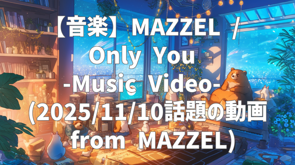 【音楽】MAZZEL / Only You -Music Video- (2025/11/10話題の動画 from MAZZEL) 動画: MAZZEL / Only You -Music Video- (YouTubeより) 動画情報 チャンネル: MAZZEL 公開日: 2025年11月03日 再生回数: 約2,822,827回 高評価数: 約56,298件 コメント数: 約... -