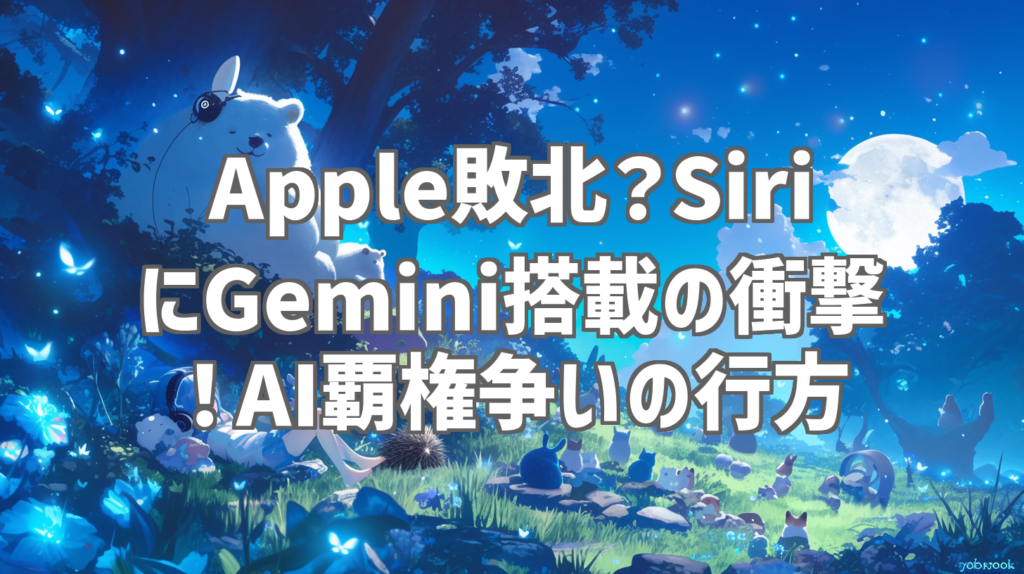 Apple敗北?SiriにGemini搭載の衝撃!AI覇権争いの行方 AppleがGoogleのGeminiをSiriに搭載するという衝撃的なニュース!正直、発表を聞いた時は耳を疑いました。長年、独自のAIアシスタントSiriを開発してきたAppleが、まさかGoogleの力を借りるとは…。こ...