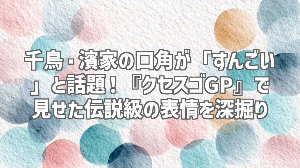 千鳥・濱家の口角が「すんごい」と話題!『クセスゴGP』で見せた伝説級の表情を深掘り 皆さん、こんにちは!人気YouTube動画を深掘りするYouTubeレビューブロガーの[あなたの名前]です。突然ですが、皆さんは千鳥の濱家さんの表情に注目したことはあります...