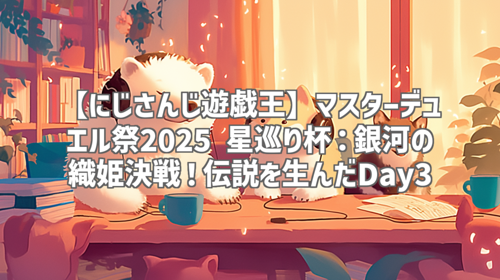 【にじさんじ遊戯王】マスターデュエル祭2025 星巡り杯:銀河の織姫決戦!伝説を生んだDay3 皆さん、こんにちは!人気YouTubeレビューブロガーの私です。今回は、VTuber界隈を揺るがした一大イベント「にじさんじ遊戯王マスターデュエル祭2025」の最終日、...