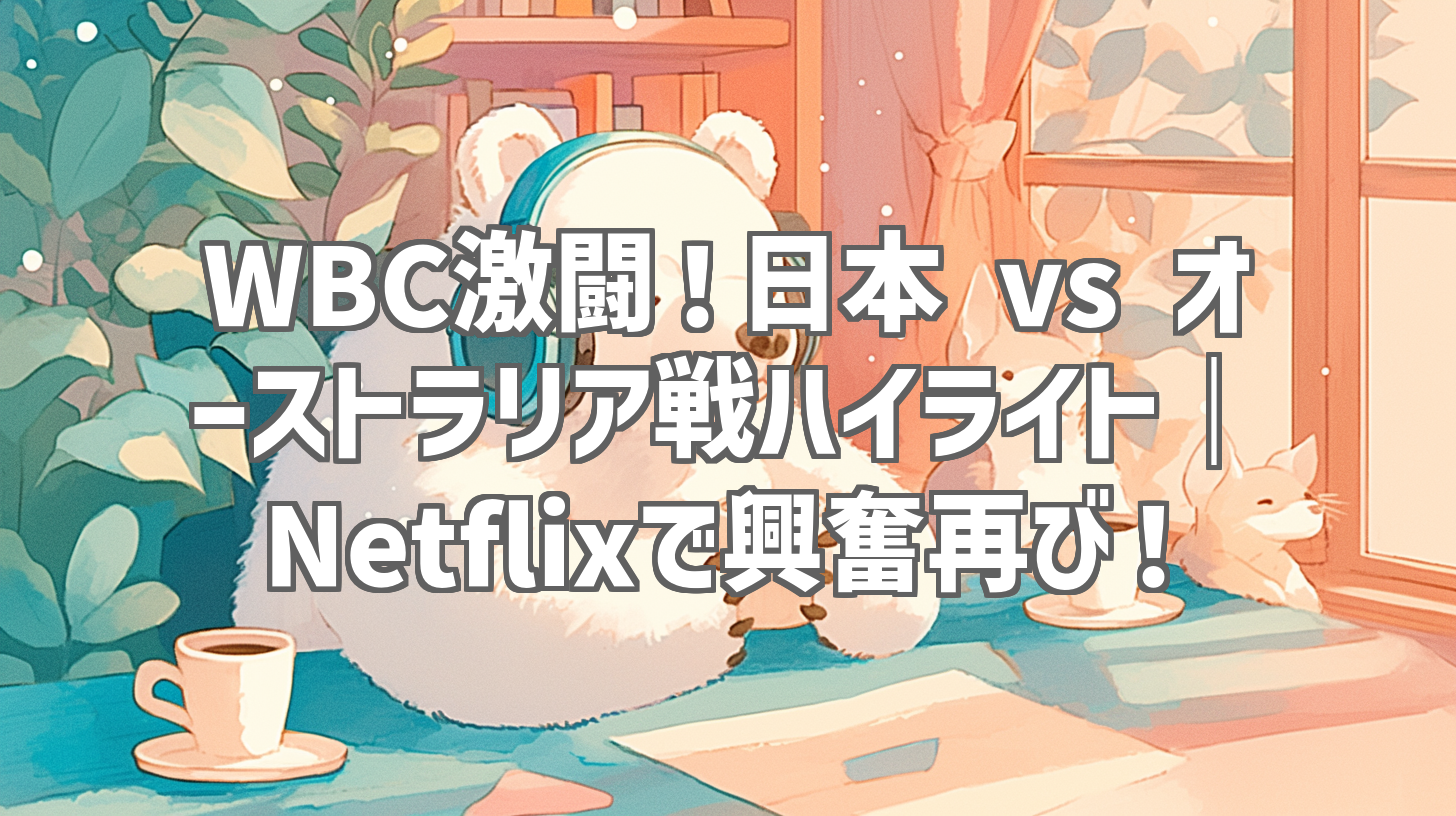 Netflixで配信されたWBC、日本 vs オーストラリア戦のハイライト動画は、5分という短い時間の中に、試合の興奮と感動が凝縮された素晴らしい作品でした。手に汗握る攻防、選手の熱いプレー、そして勝利の喜びを、ぜひもう一度味わってみてください。 Netflixでは、WBCの全試合が配信されているので、他の試合もチェックして、侍ジャパンを応援しましょう! まだ見ていない方は、今すぐNetflixにアクセスして、熱い戦いを体感してください! この感動を、みんなで分かち合いましょう!
