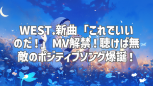 WEST.(ウエスト)の新曲「これでいいのだ!」のミュージックビデオが公開されました!重岡大毅くんが作詞・作曲・振付を手掛けたというこの曲、公開前からSNSで話題沸騰でしたが、実際に聴いてみたら予想をはるかに超えるポジティブソングで、マジで元気が出ました!一度聴いたら頭から離れない中毒性のあるメロディーと、WEST.らしい遊び心満載のMVに、ヘビロテ確定の予感しかしません!今回の記事では、この「これでいいのだ!」のMVを徹底的にレビューしちゃいます!